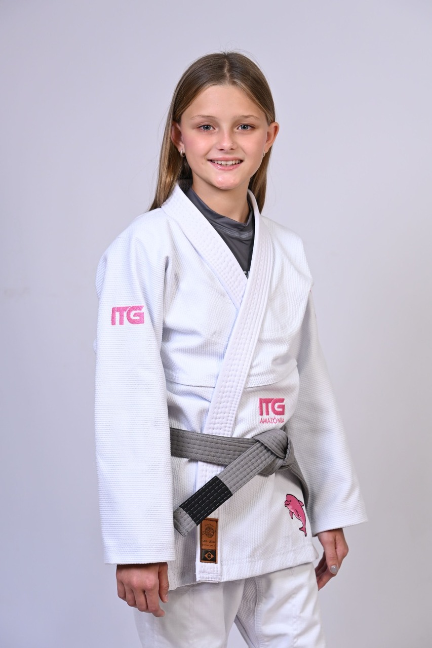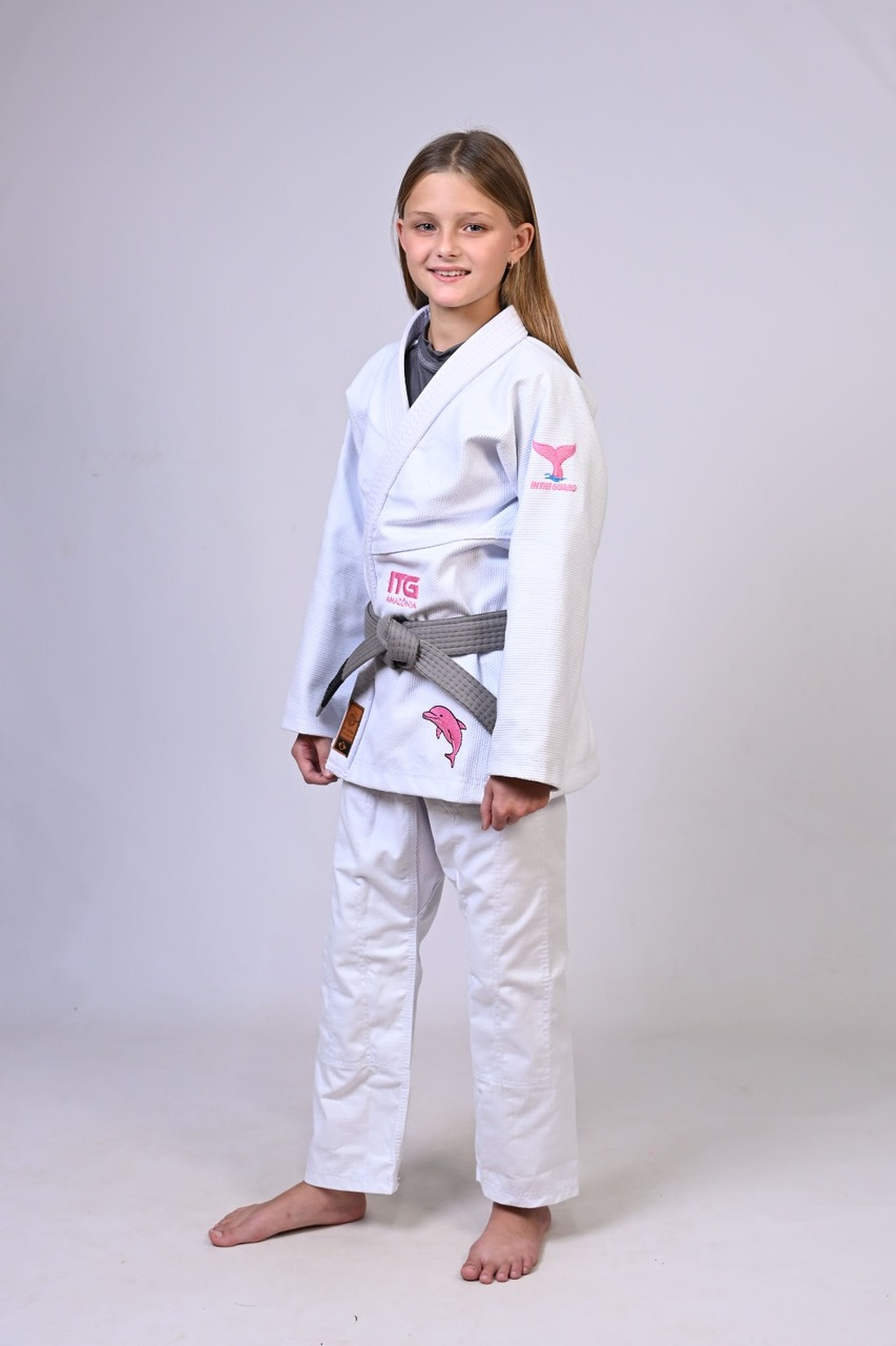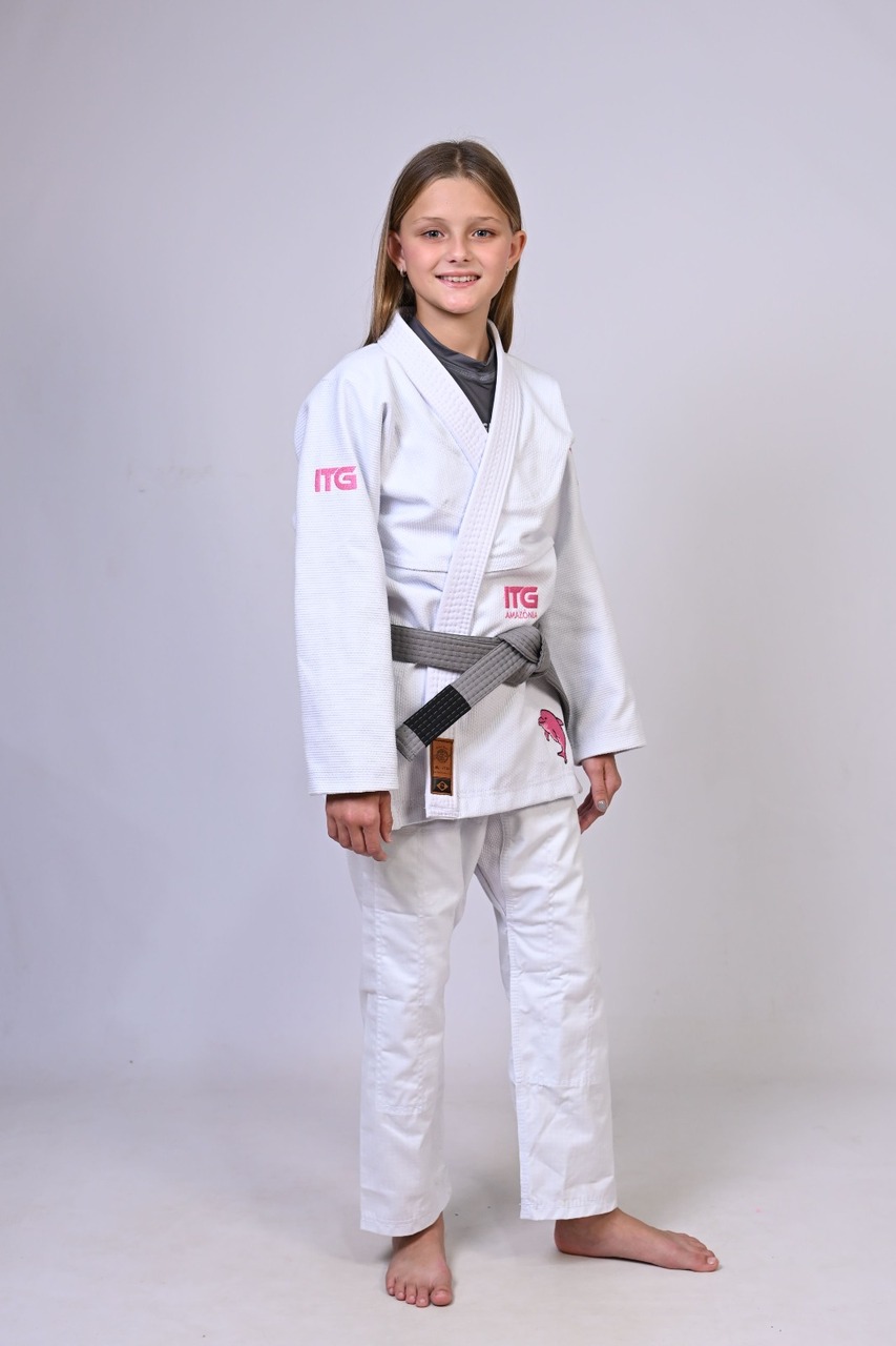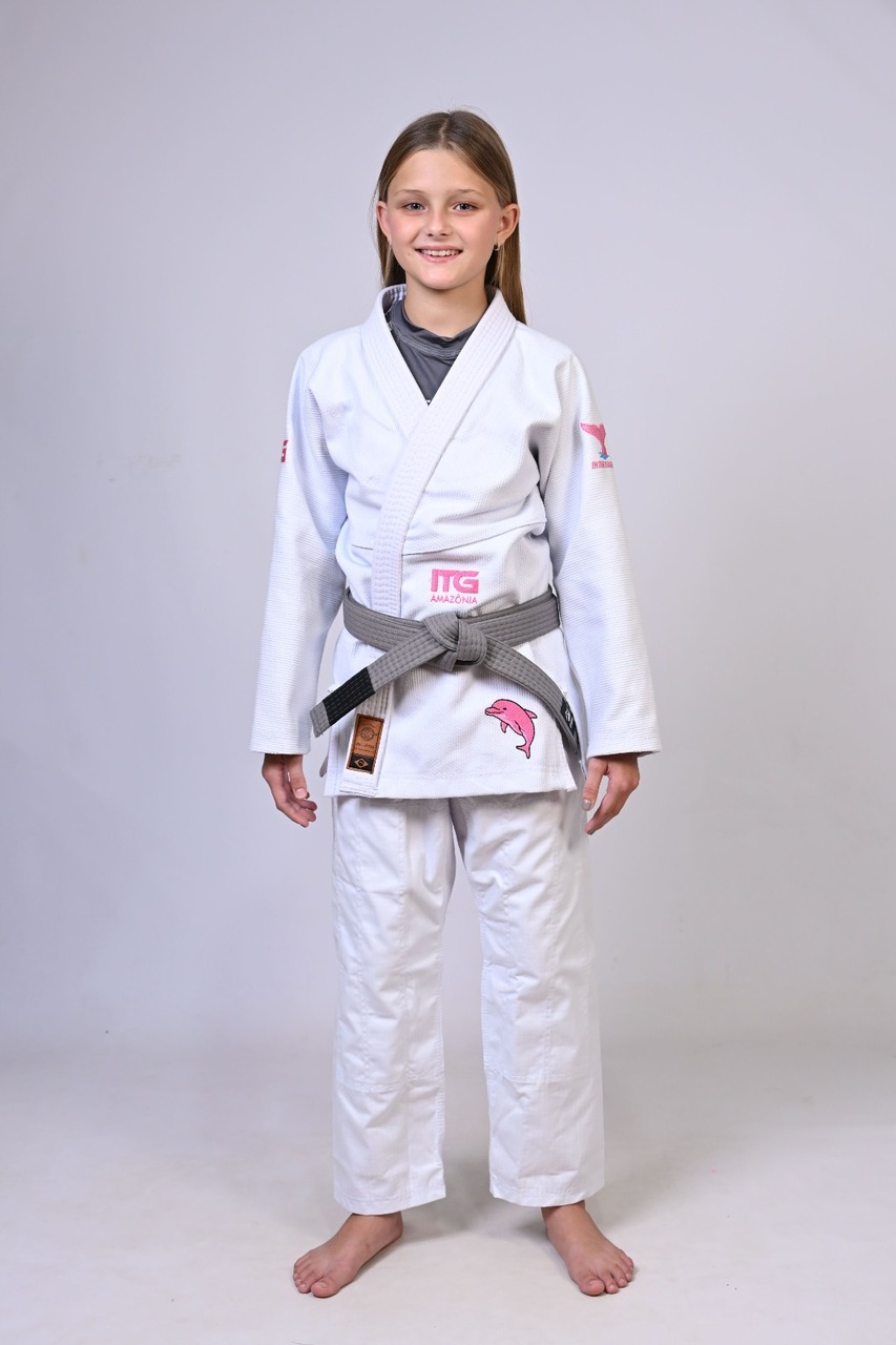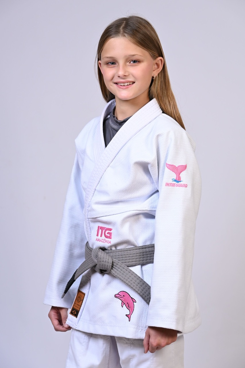 Kimono Infantil In The Guard BOTO ROSA Feminino. Padrão CBJJ - Branco