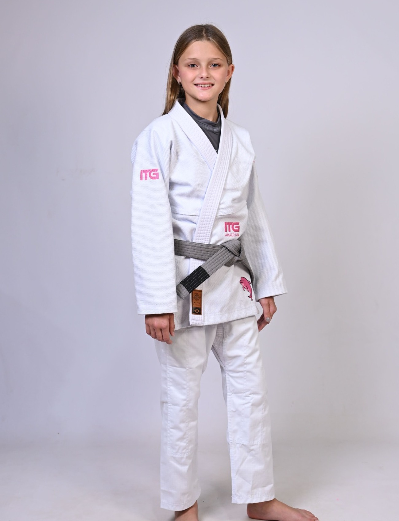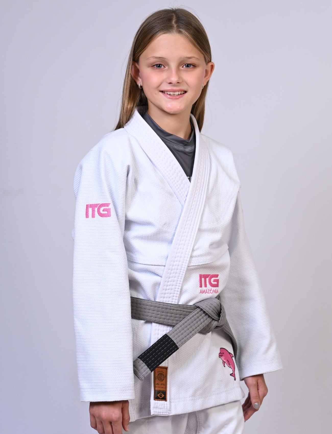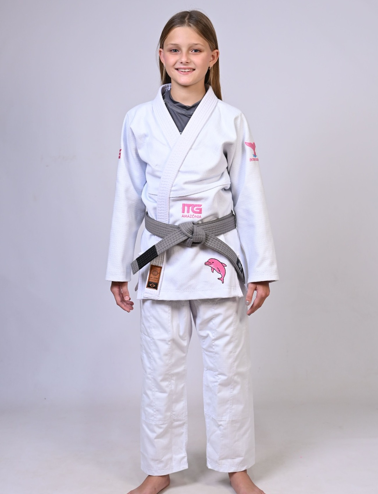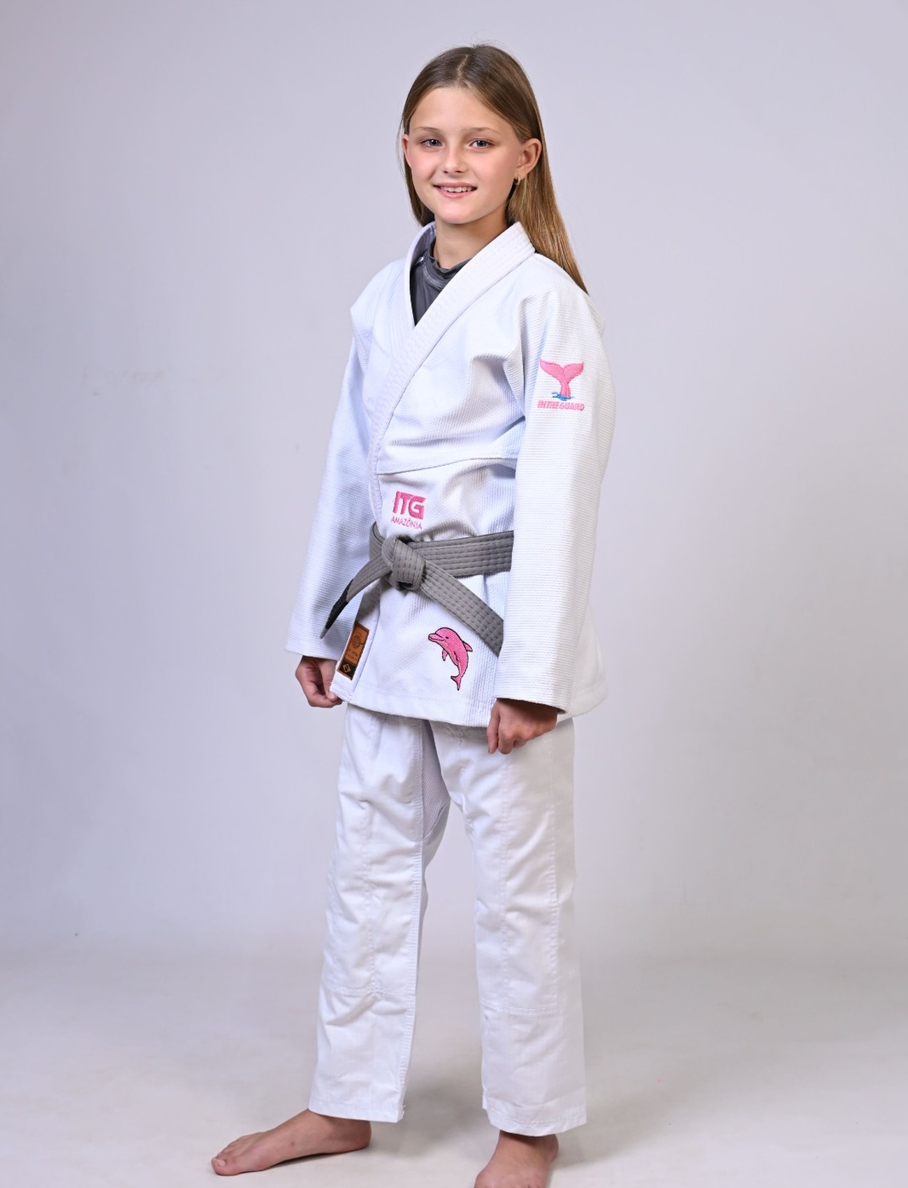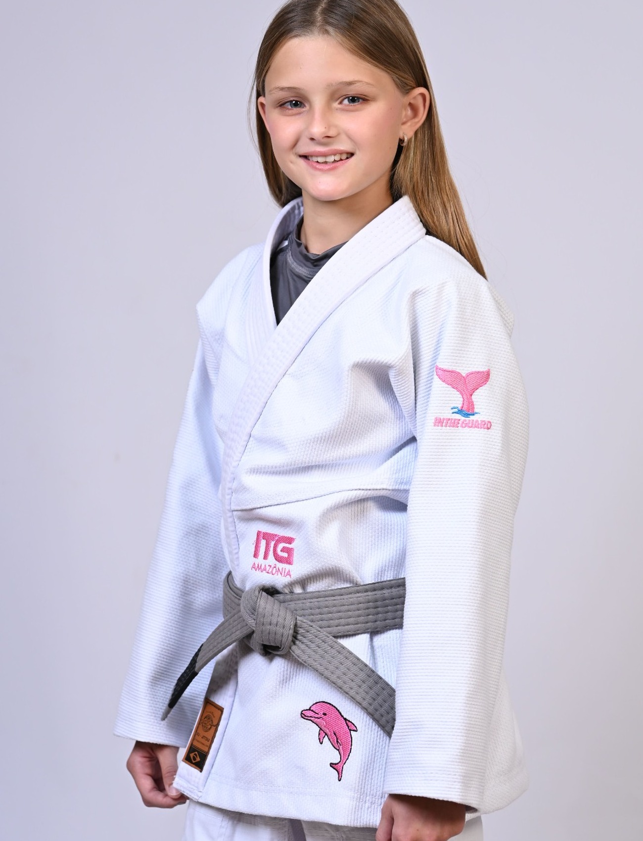 Kimono Infantil In The Guard BOTO ROSA Feminino. Padrão CBJJ - Branco